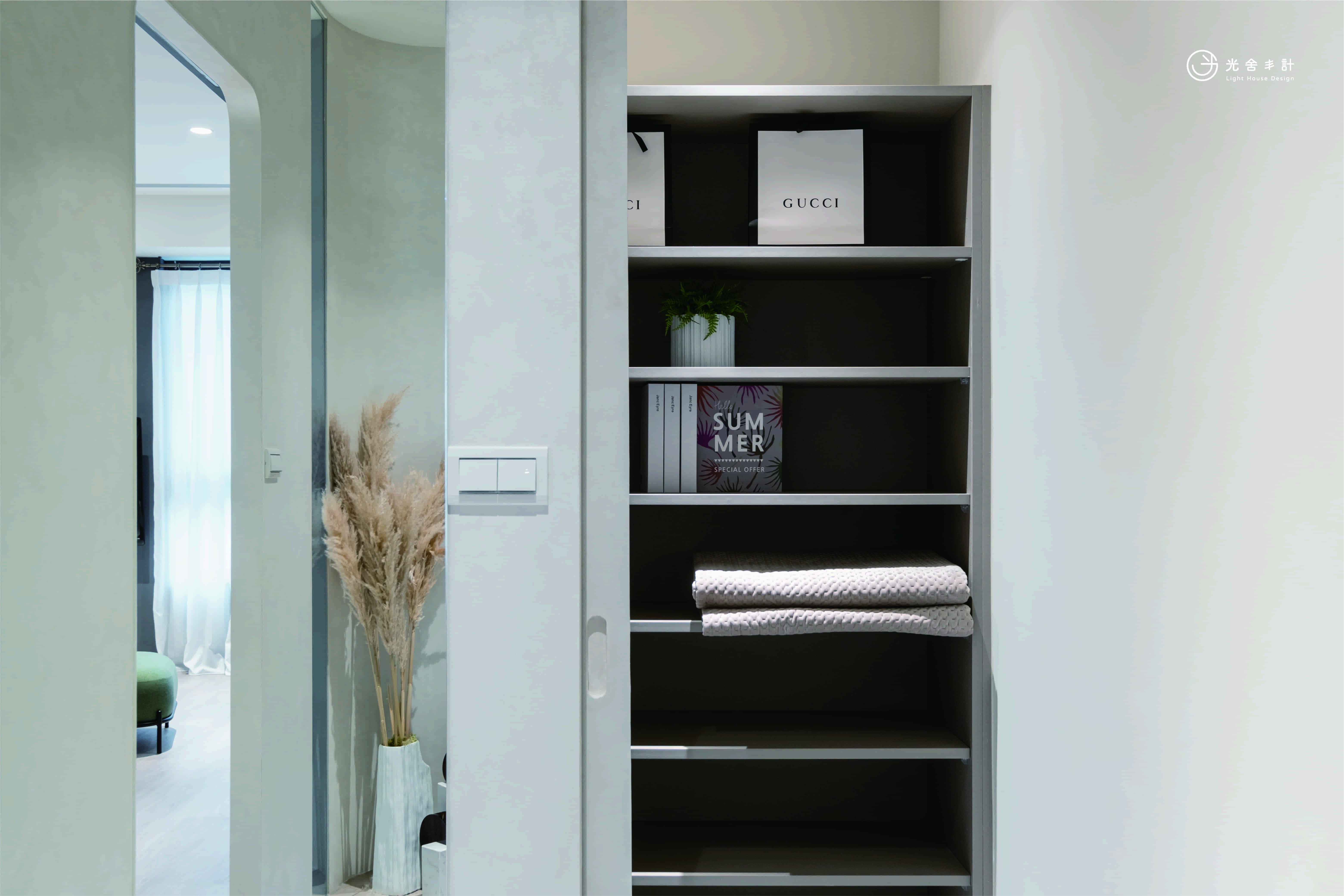 先創造屋內風的流動,並配合疫情時代,隔開玄關讓髒空氣第一時間被抽走;