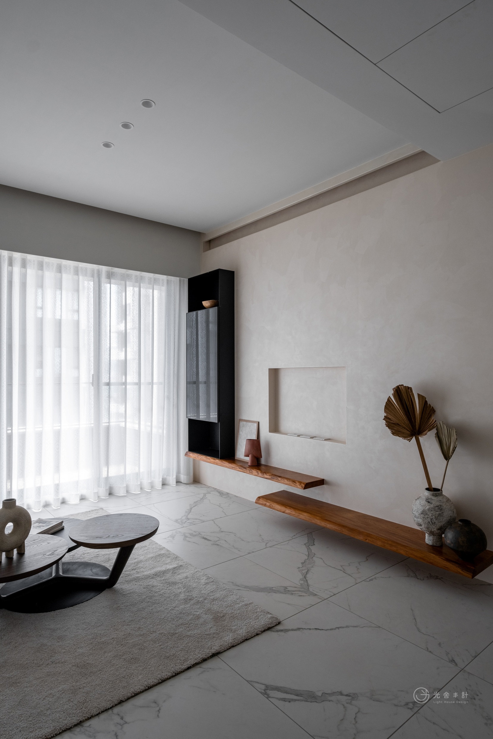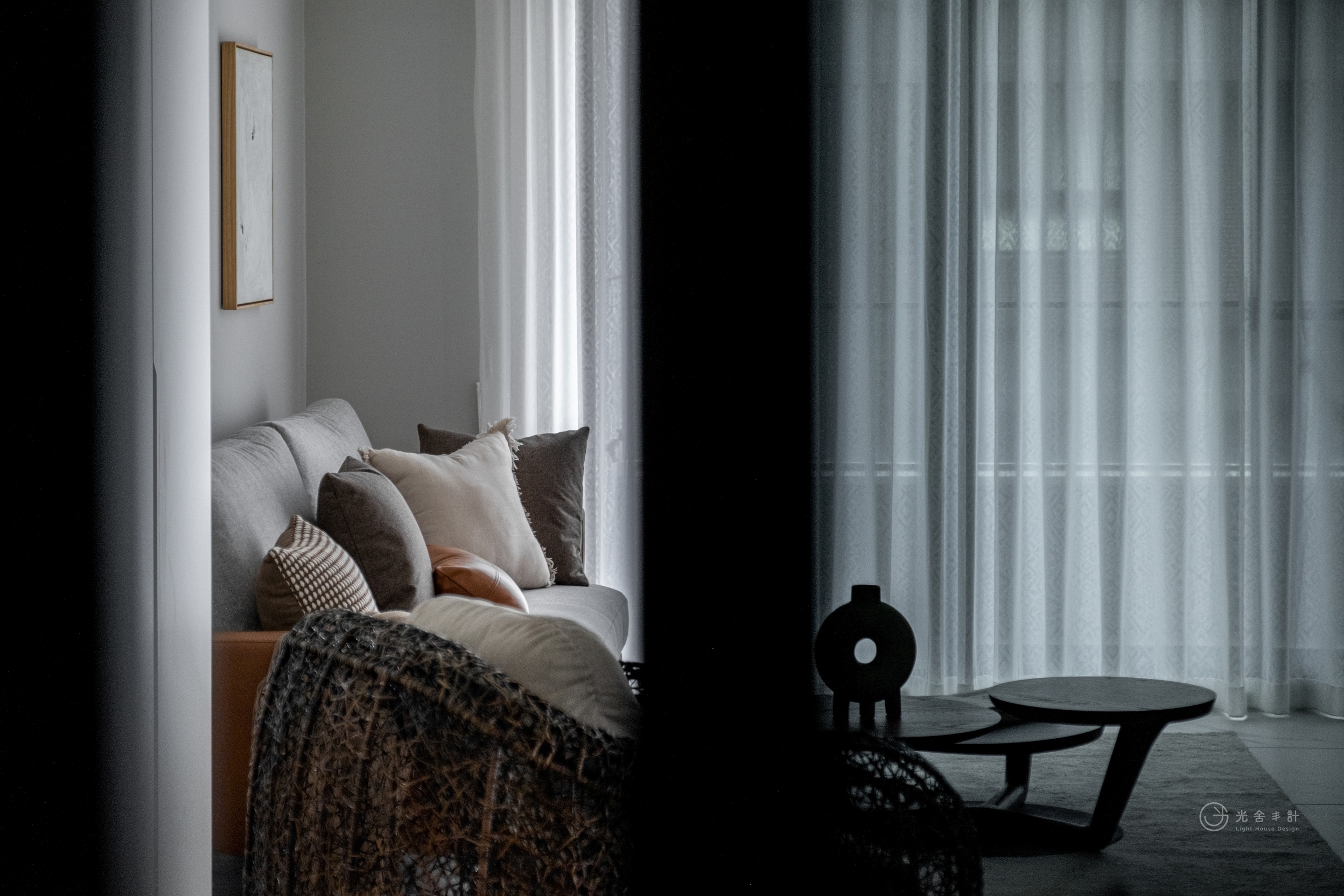 一筆一繪,在紗簾、鐵件和原木家具上烘襯出脫俗的高雅。
