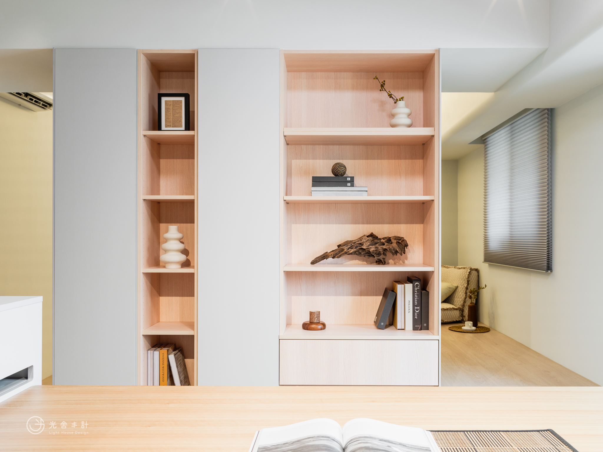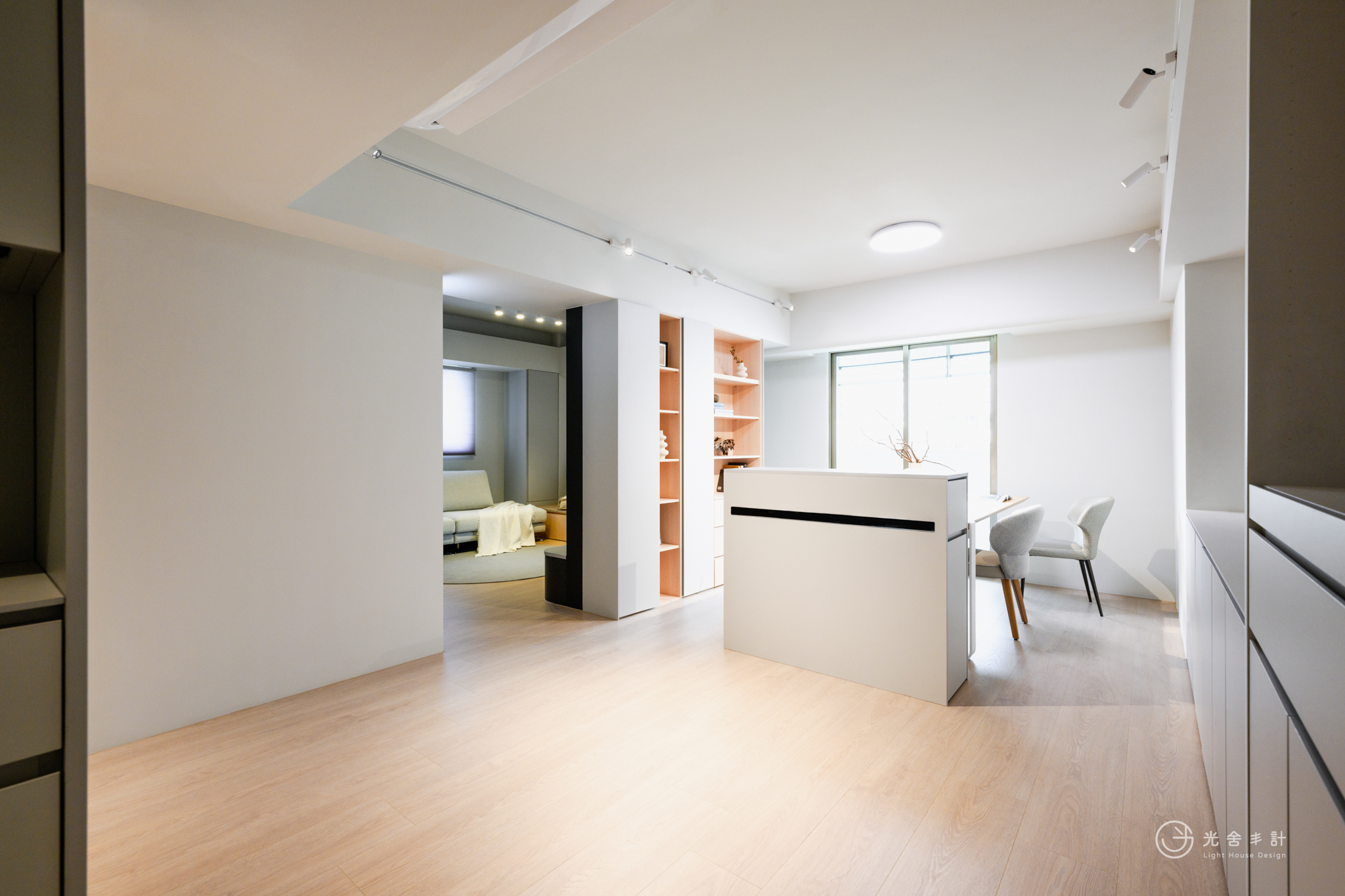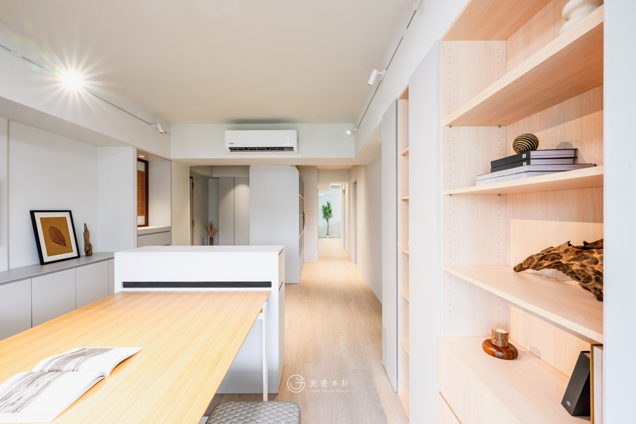 大面積開窗,讓光線注入。減少辦公區與私領域的門板,才得以重塑生活更遼闊的可能:那畫面,是爸爸的頭髮早已花白,處理公事的側臉卻仍聚精會神,而孩子們會窩在客廳沙發上,打電動嬉鬧,肆無忌憚分享學校發生的趣聞。