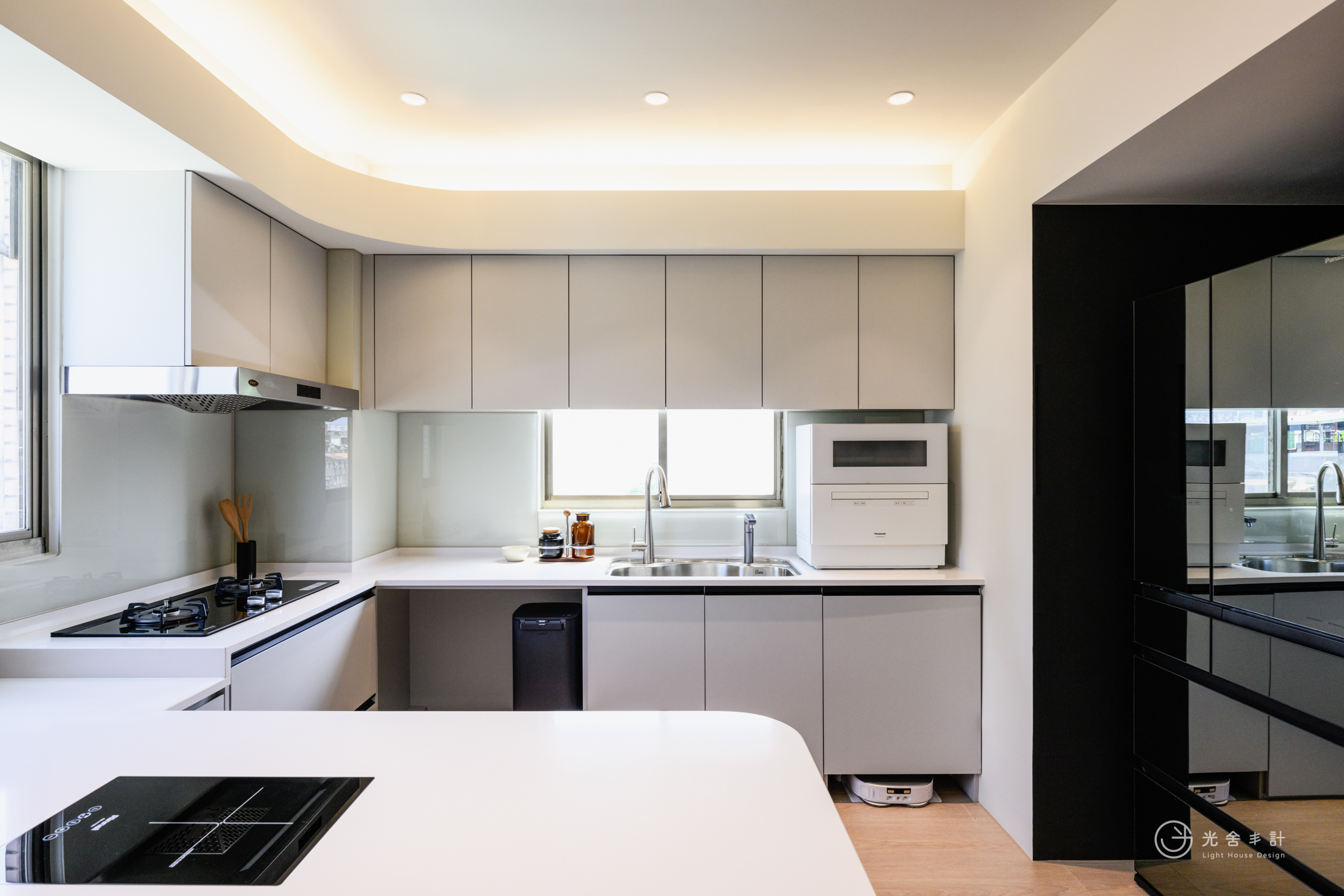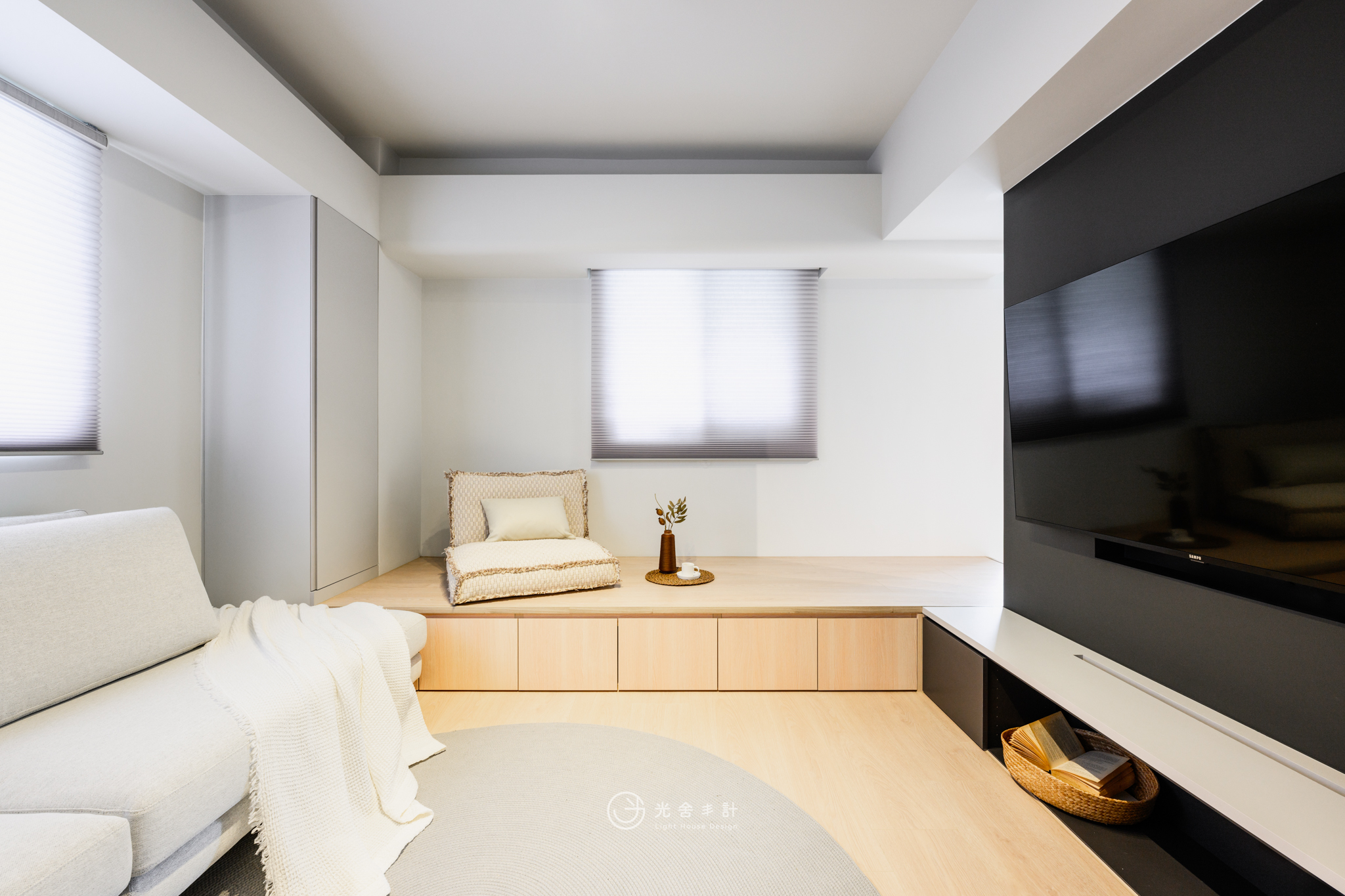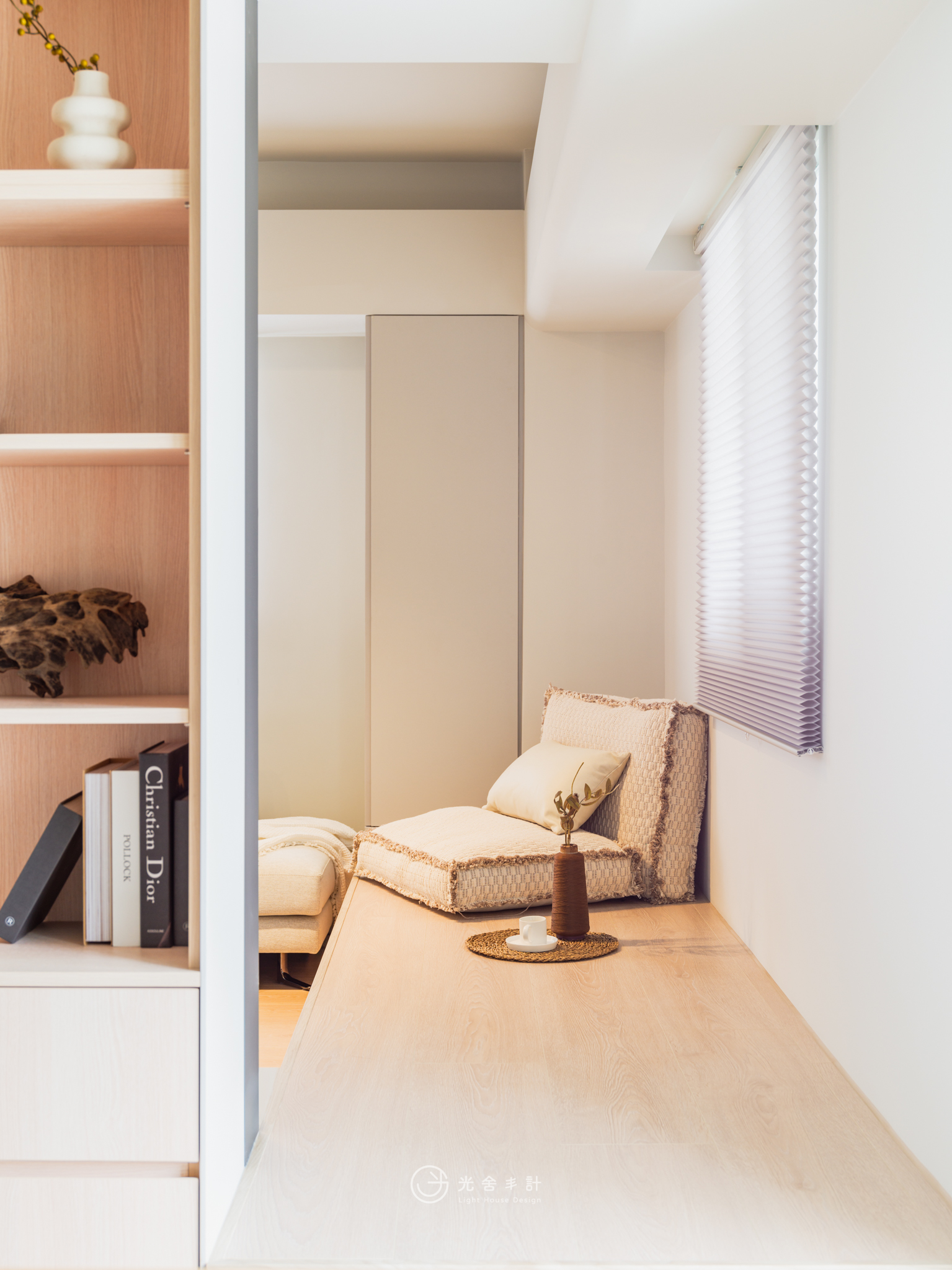 大面積開窗,讓光線注入。減少辦公區與私領域的門板,才得以重塑生活更遼闊的可能:那畫面,是爸爸的頭髮早已花白,處理公事的側臉卻仍聚精會神,而孩子們會窩在客廳沙發上,打電動嬉鬧,肆無忌憚分享學校發生的趣聞。