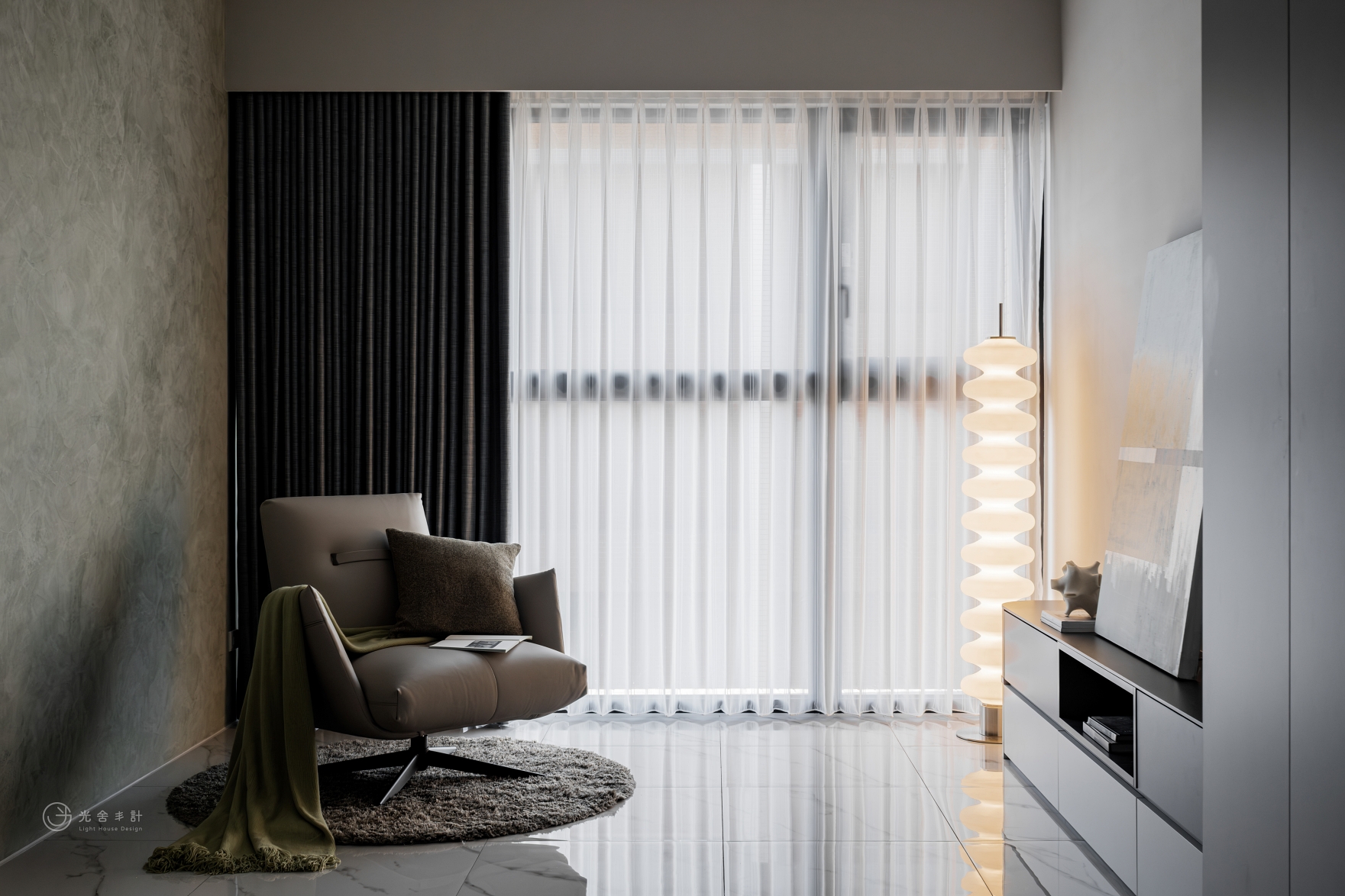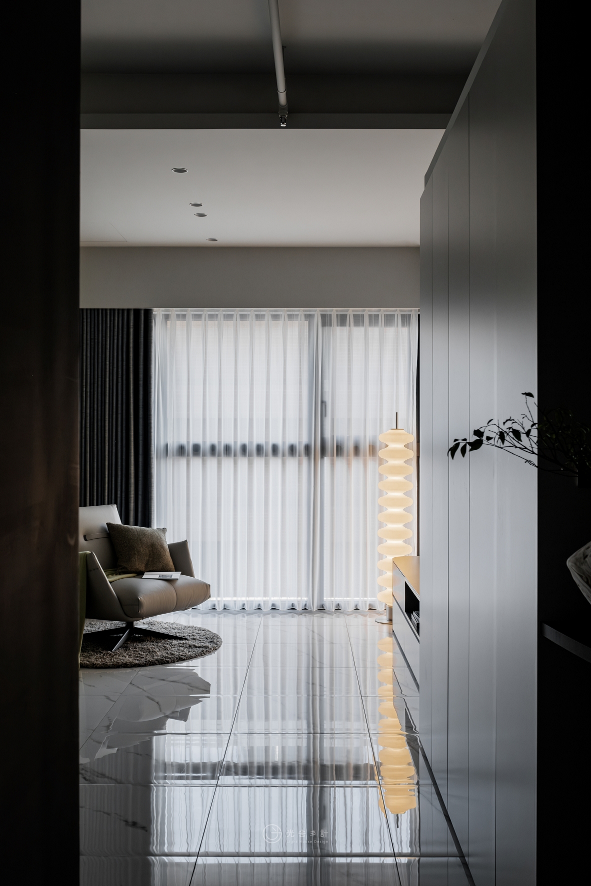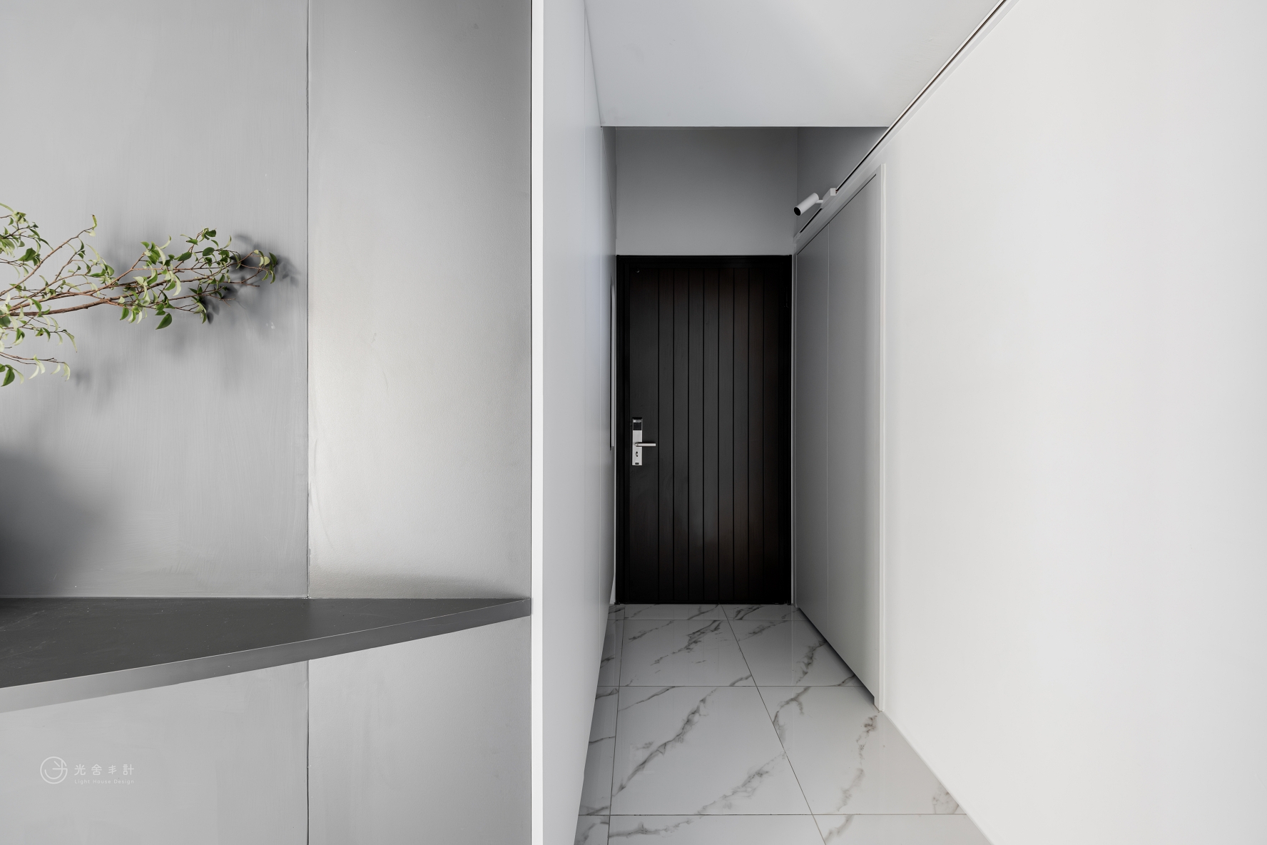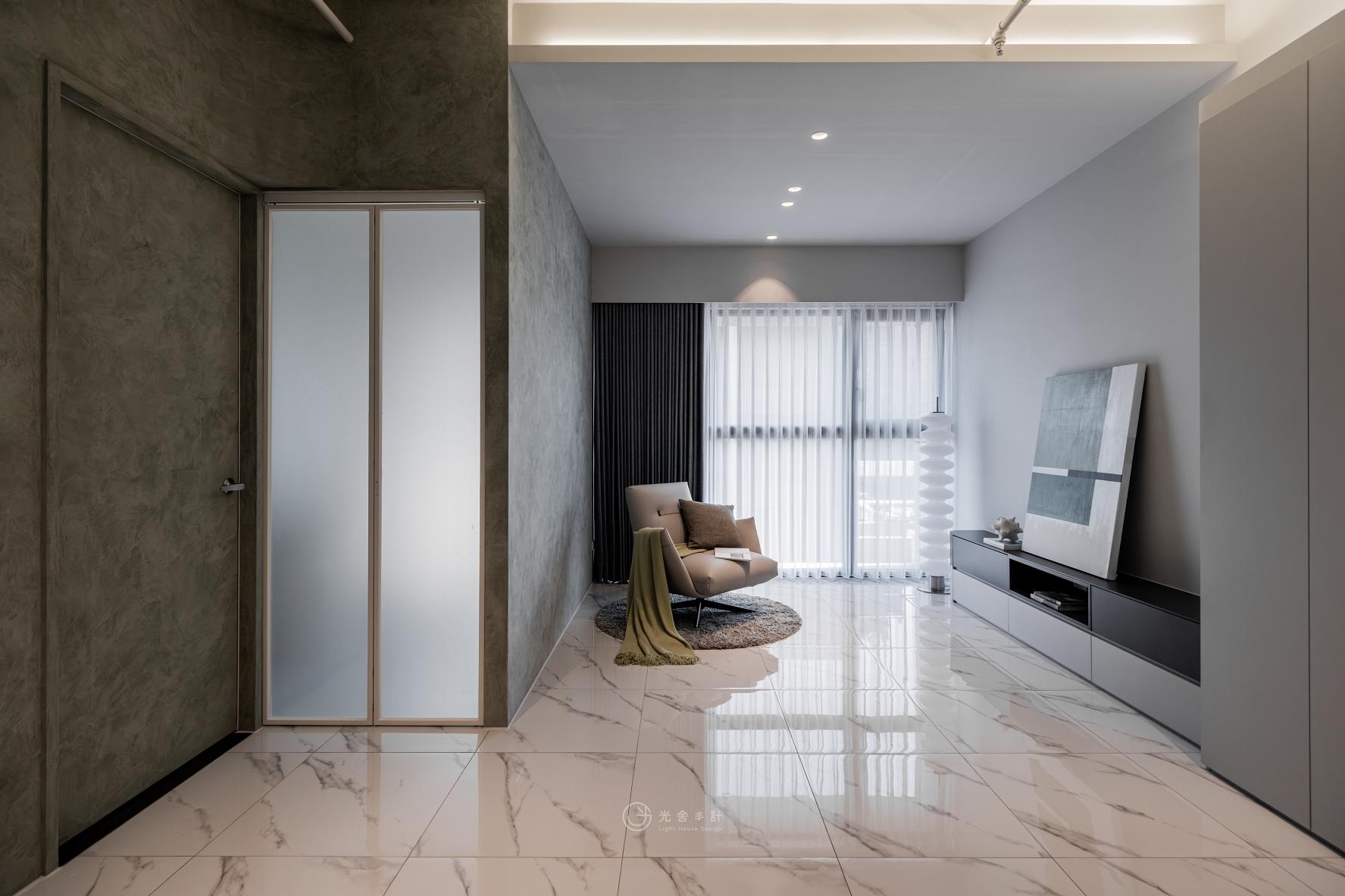 拋光的石紋地磚,與細雨般內斂的霧灰揉合,