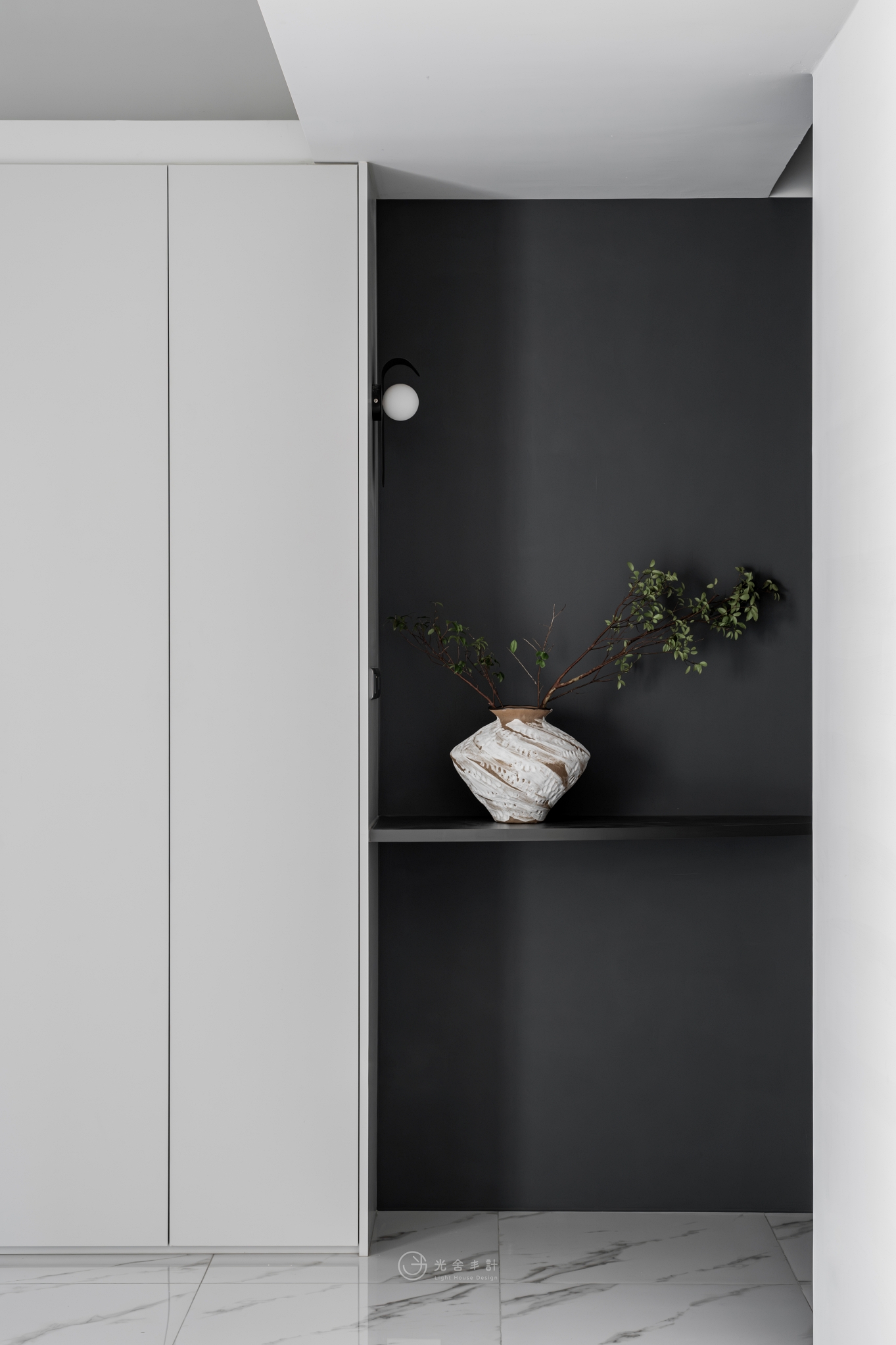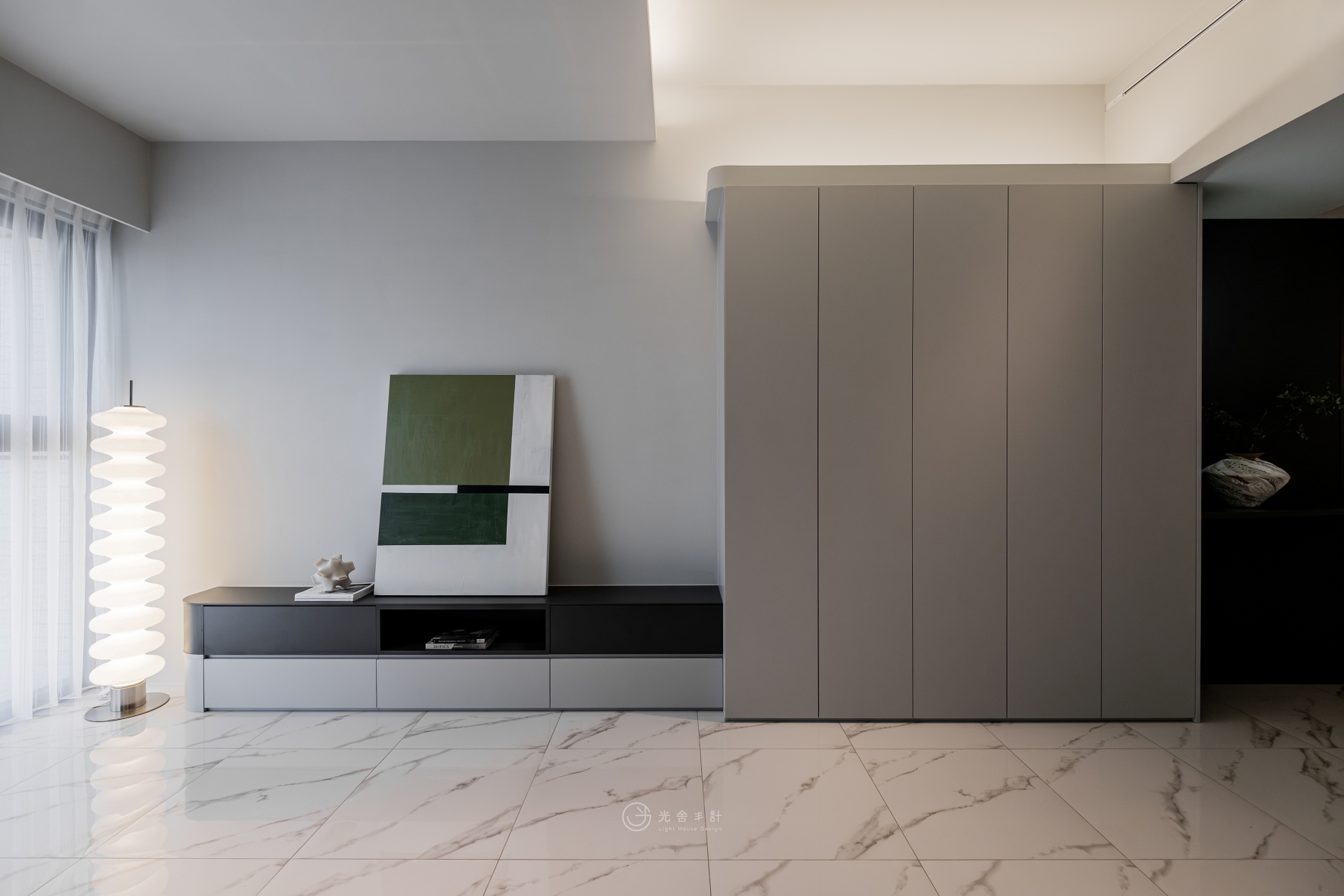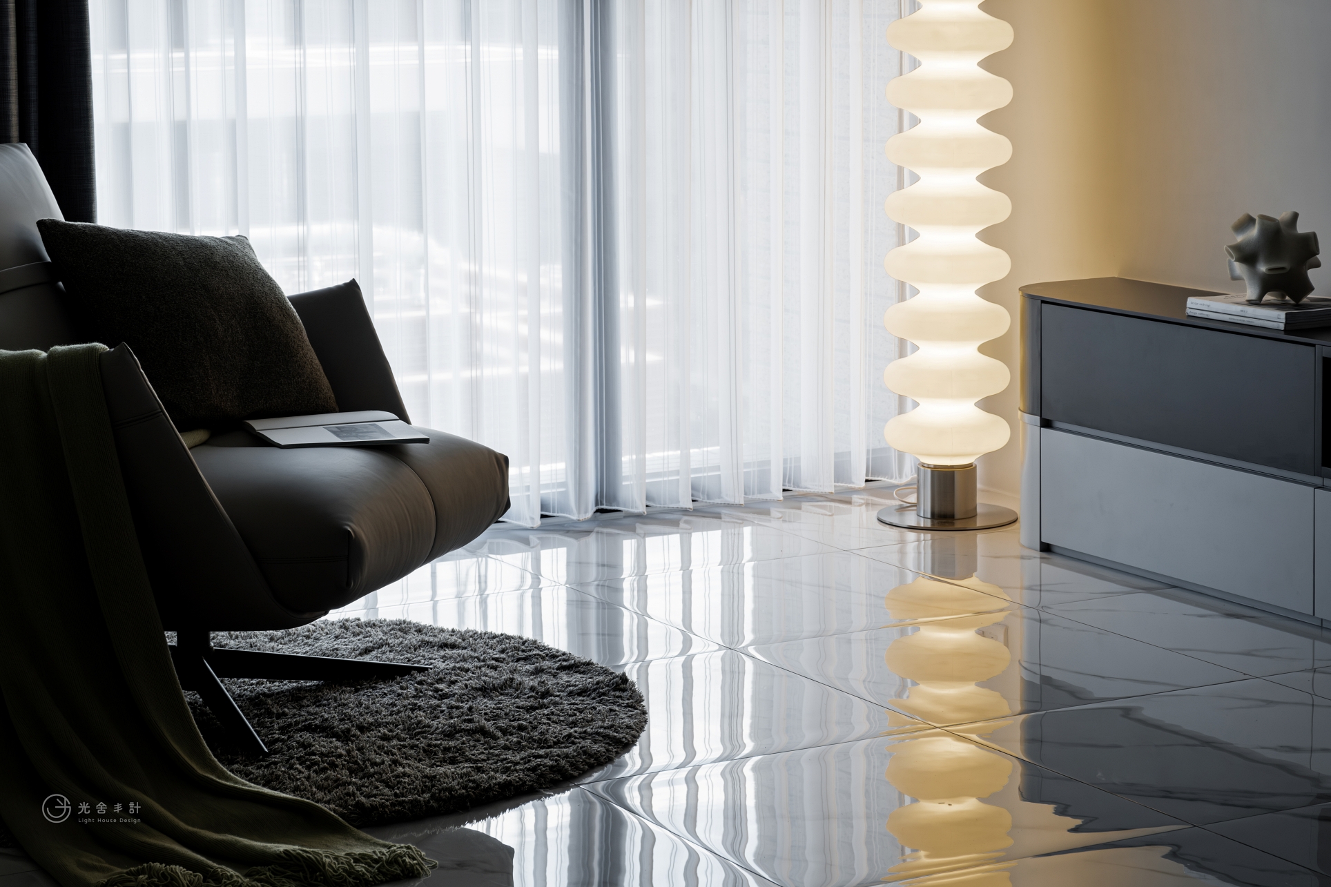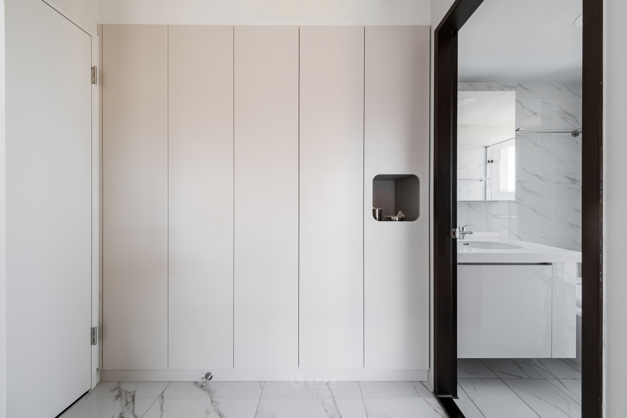 拋光的石紋地磚,與細雨般內斂的霧灰揉合,