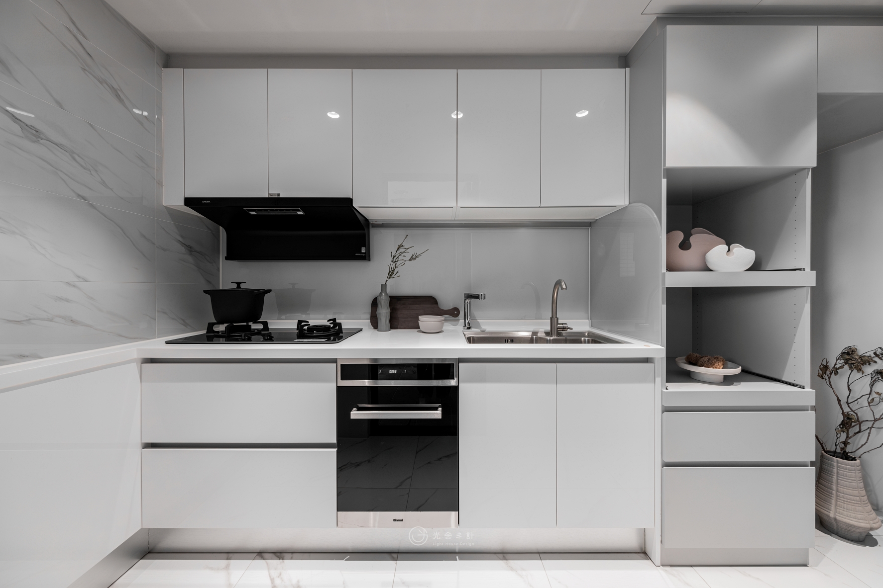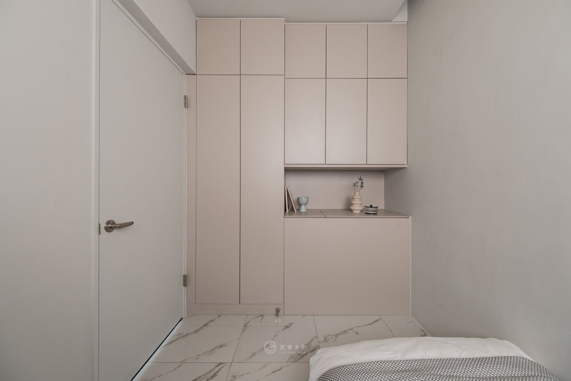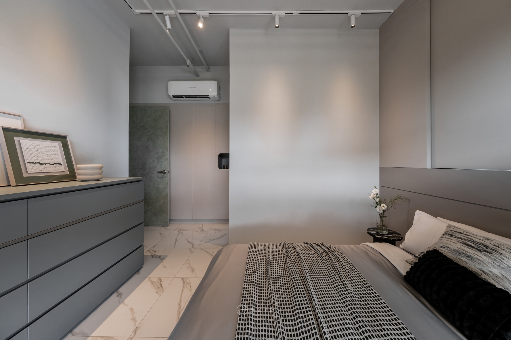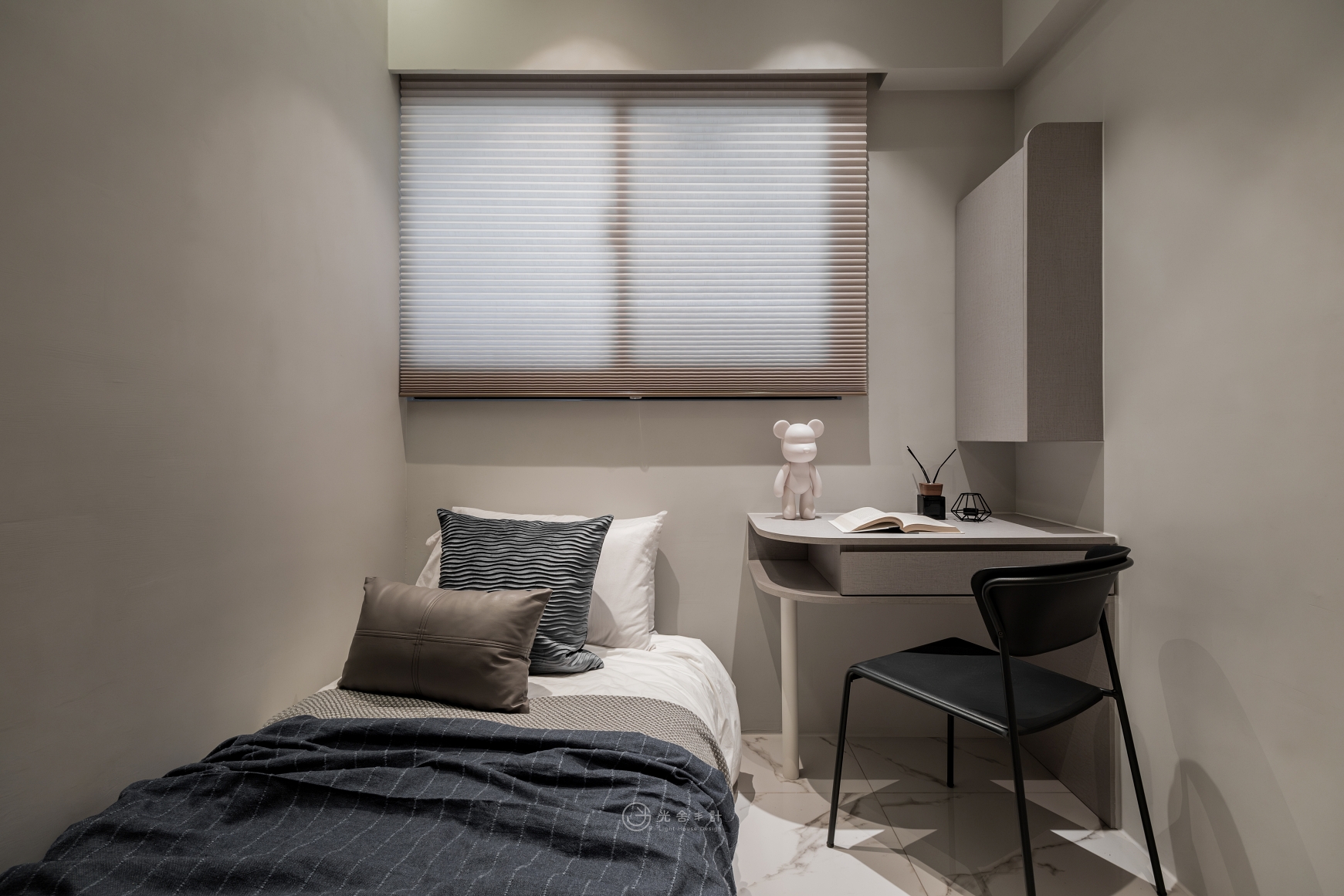 拋光的石紋地磚,與細雨般內斂的霧灰揉合,