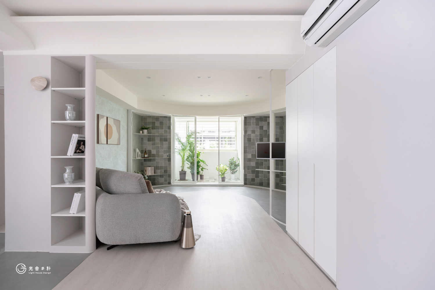 一旁半透明噴砂折門,盡可能保留最多採光。