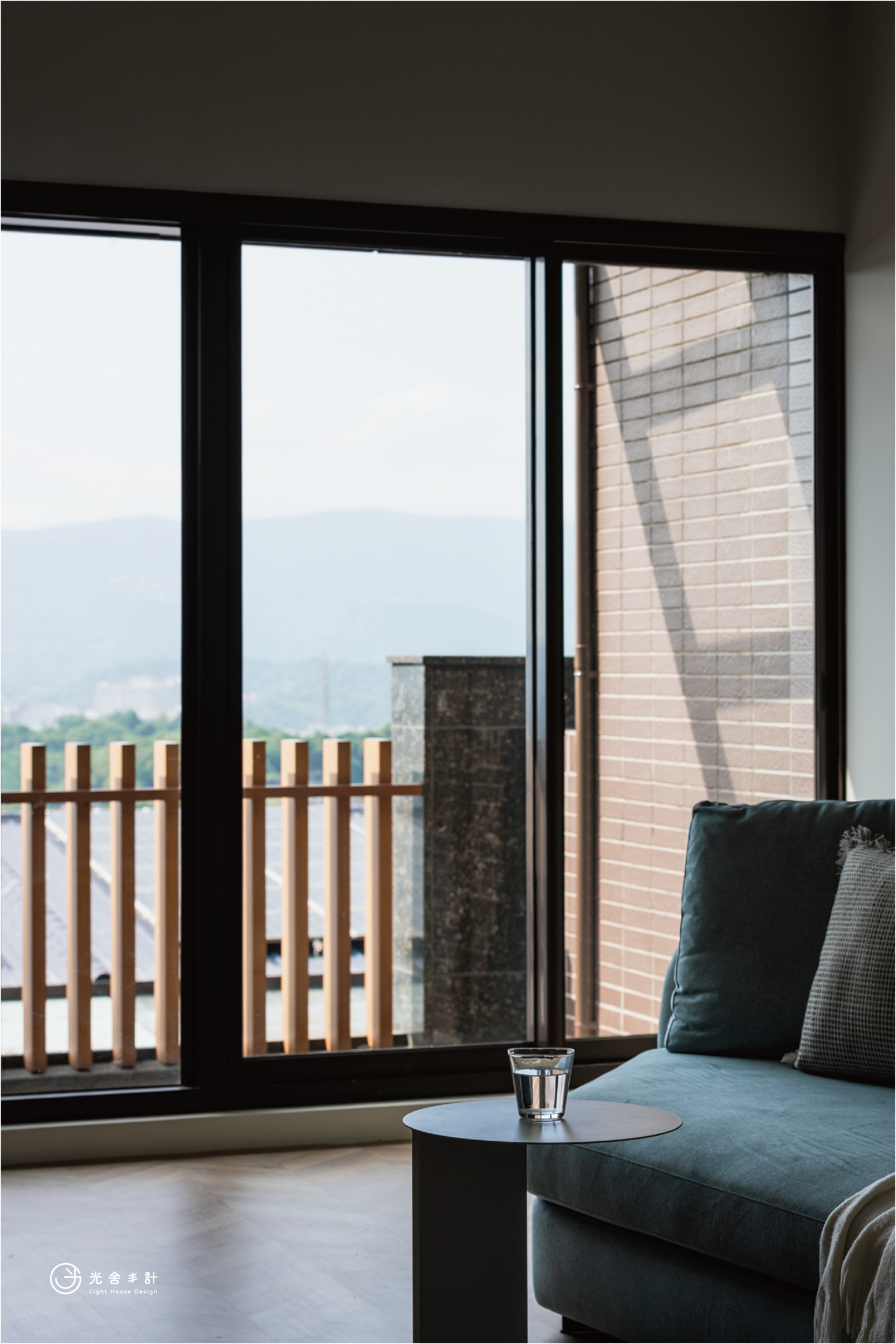 窗外諾大的陽台,用碳化材質取代原先的塑膠木地板,
