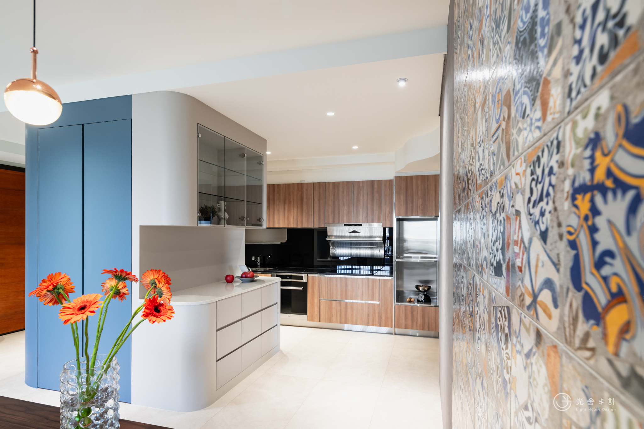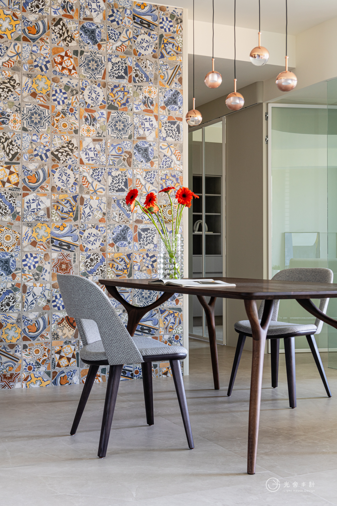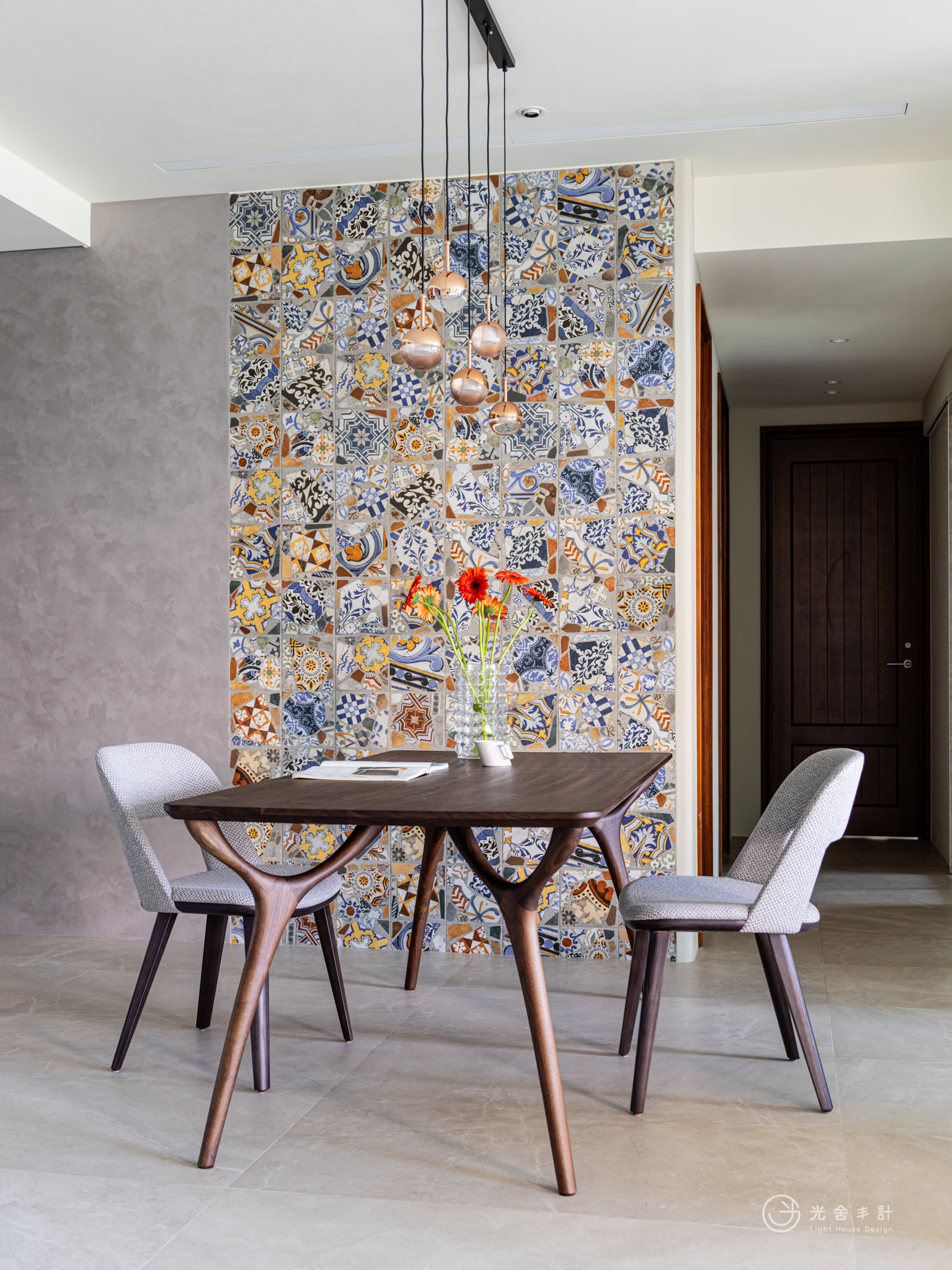 帶著復古花磚的牆面,悄悄地創造出安心的用餐空間,